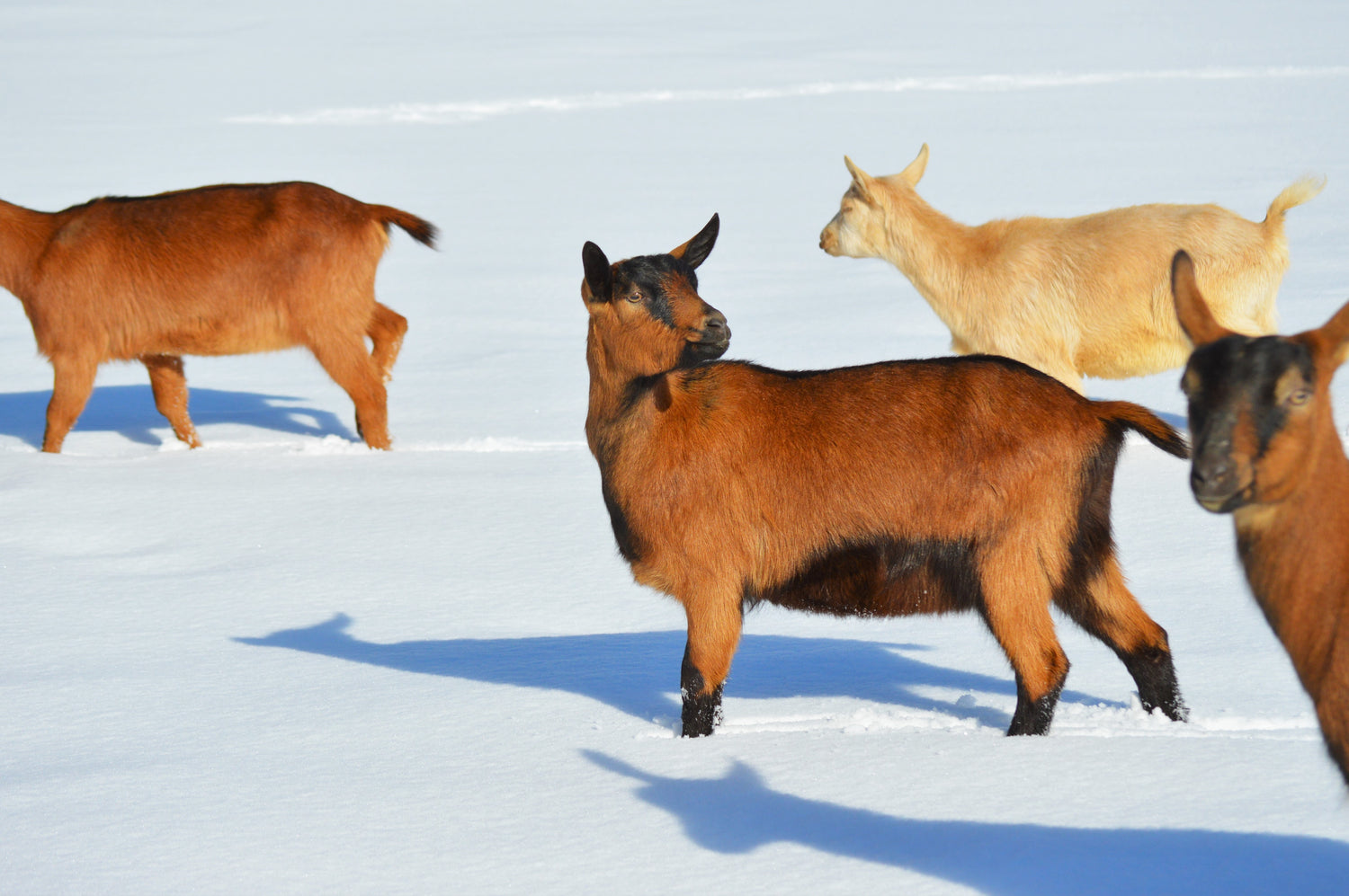 It began in 2014, when a couple of Oberhasli goats came to live at Josh Pond, and today (2023) we care for 25 milking does, and are raising 10 young does that will join our milking herd in the next few years. We became Maine's 4th certified-organic goat herd in 2018, providing Josh Pond's cheesemaker with organic goat milk to transform into our aged cheeses.