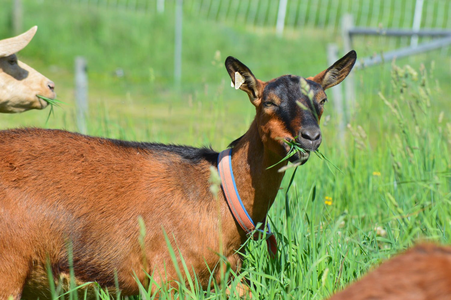 Josh Pond is home to a herd of beautiful and spirited Oberhasli goats. Our goats live a blessed life: sleeping in a timber-framed barn, eating organic grain and hay, and having acres of lush pastures to spend their days. Every goat has a name, a unique personality, and the Josh Pond herdsmen know each one of them dearly. Our mission is to care for our goats with an organic and holistic approach, keeping their individual health, safety, and livelihood at the forefront of our husbandry practices.