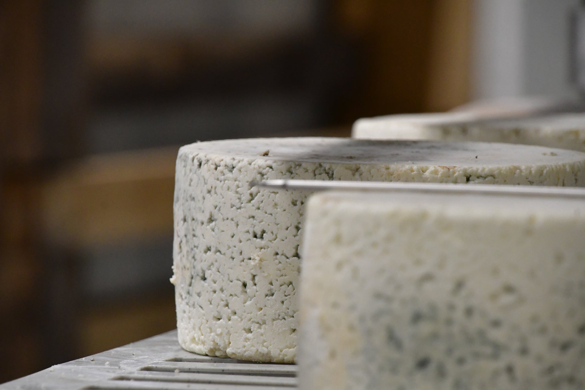 Esker Blue, made from organic cow milk, is smooth, spicy, and distinct in flavor. Encompassed in a natural, earthy rind, this cheese is aged 3-4 months below ground in our cheese cave. Deep blue veins are scattered throughout the wheel, and each bite leaves with a fresh creamy finish. Our seasonal cheeses are all handmade in small batches in the style of farmstead artisan cheesemaking.