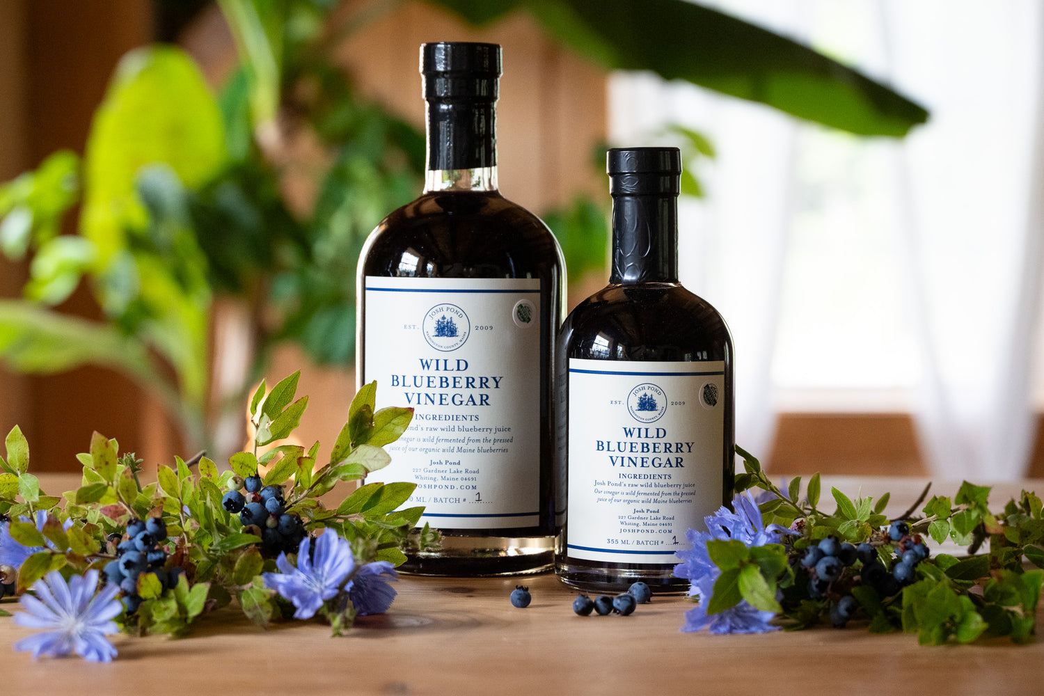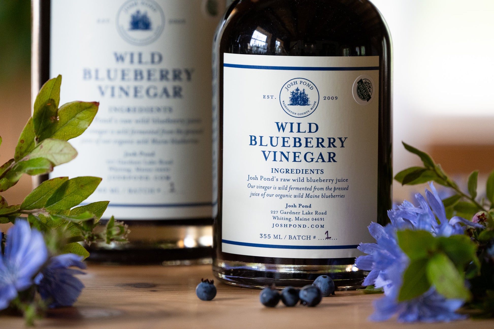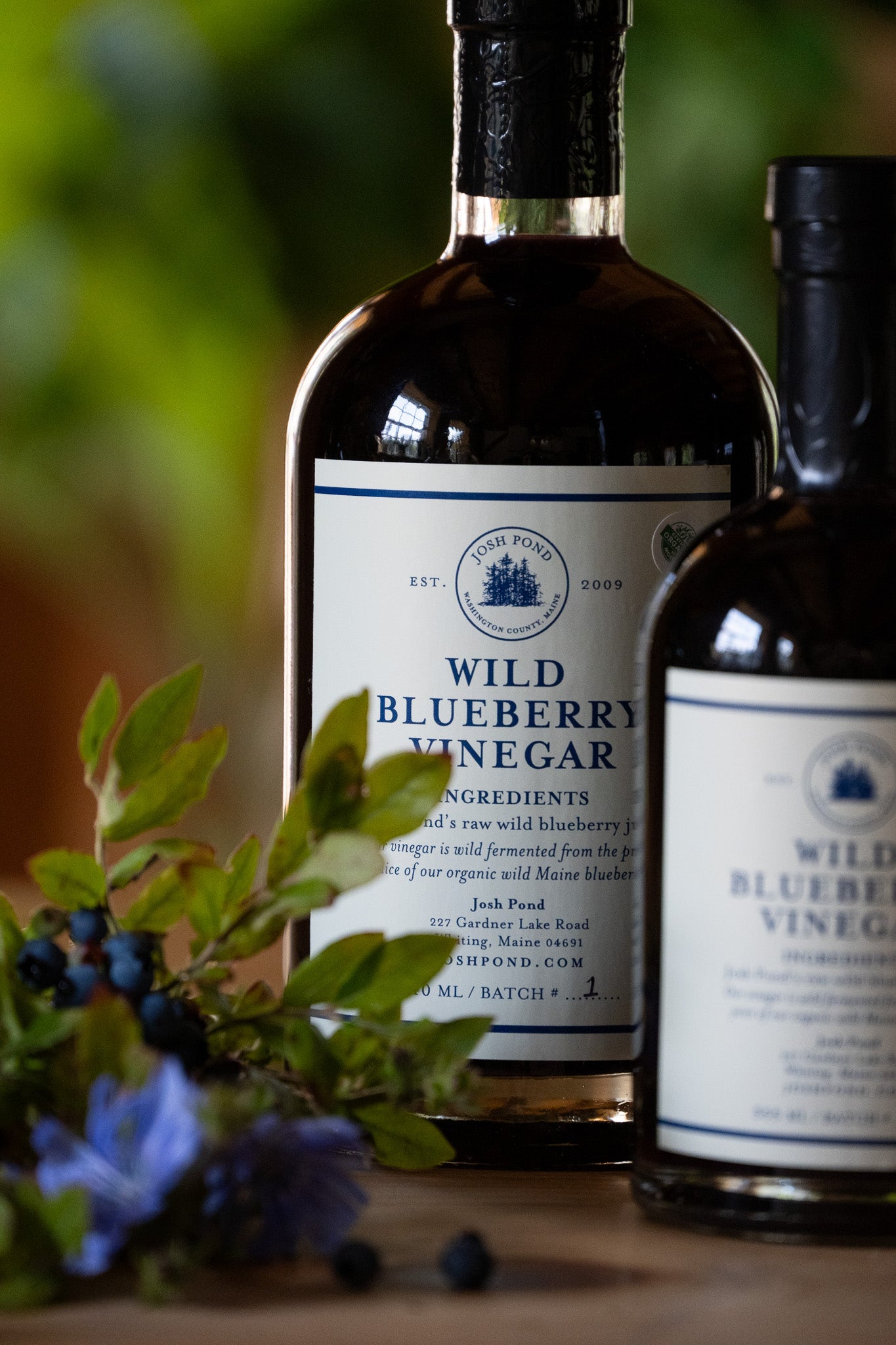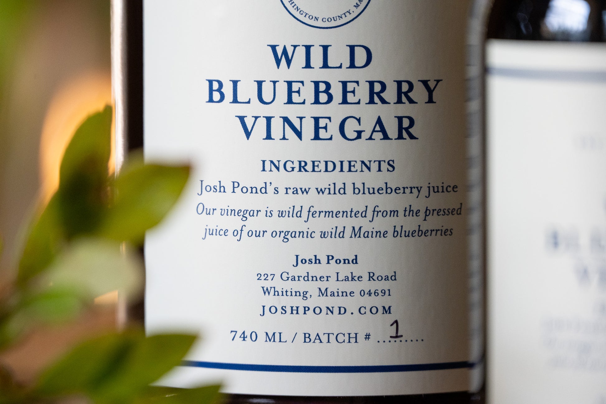 Josh Pond's Wild Blueberry Vinegar is raw, unfiltered, and crafted from our certified-organic wild Maine blueberries. Each August, we hand-rake our ripe wild blueberries and press them into our rich and flavorful juice. We then allow this juice to wild ferment into vinegar until the perfect acidity and flavor is achieved. Our vinegar is never filtered and includes the 'Mother'.